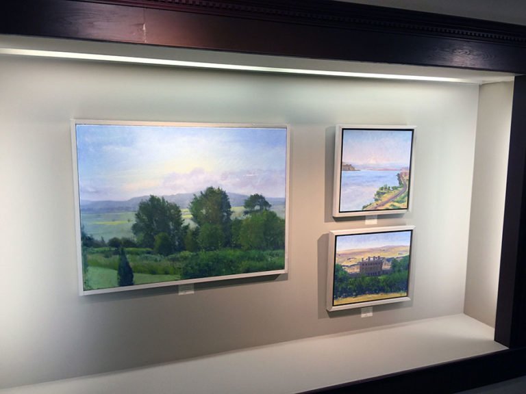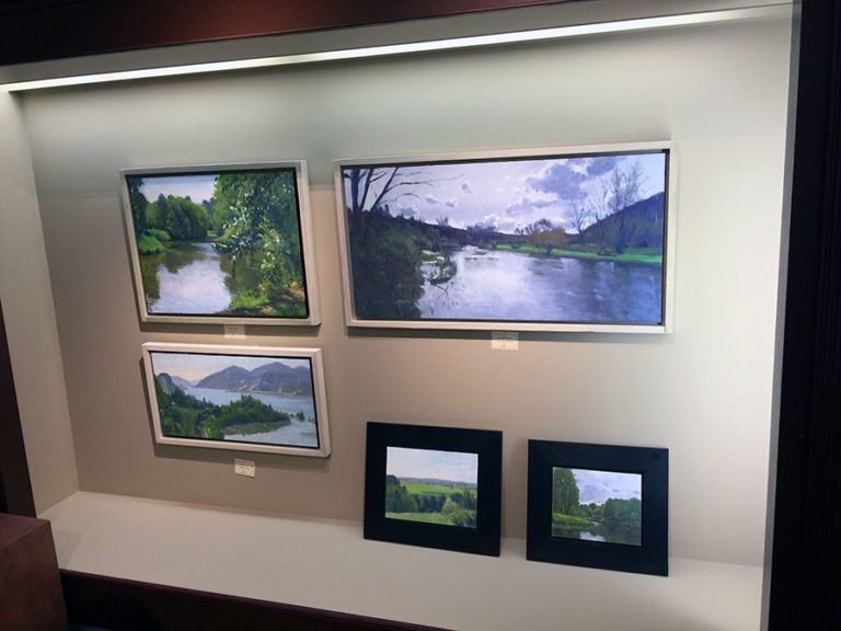 This is the installation of my current exhibition at Dodson’s Fine Jewelers, in Spokane, WA. I regret that my photographs do not do the installation justice, but it was the best that I could do under the circumstances.